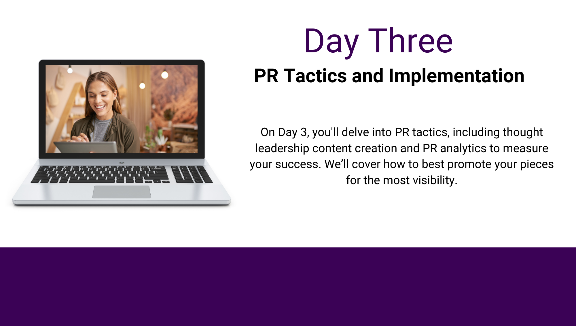 In this training, you'll learn how to use PR to elevate your personal brand and position yourself as a thought leader. You'll gain practical insights and actionable strategies to ensure your brand stands out and builds lasting trust.